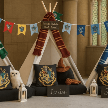 Vos enfants vivront une expérience inoubliable sous des tipis de qualité, équipés de matelas confortables, de couvertures douces, de tapis moelleux et de guirlandes lumineuses. Le tout est sublimé par une décoration soigneusement pensée autour d’un thème ensorceleur.