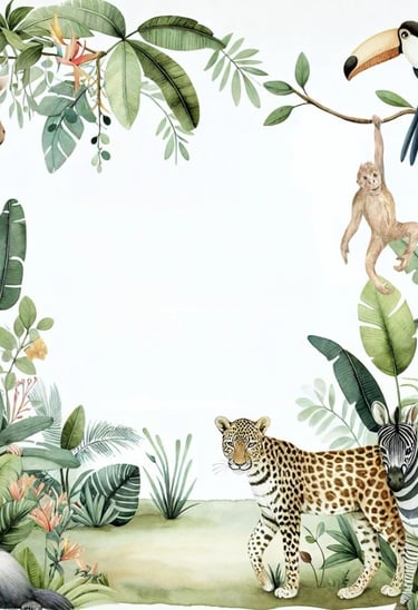 Bienvenue dans la jungle magique ! Tigres malicieux, singes farceurs et feuillages géants sont là pour faire rugir de joie votre petit aventurier dans une aventure sauvage.